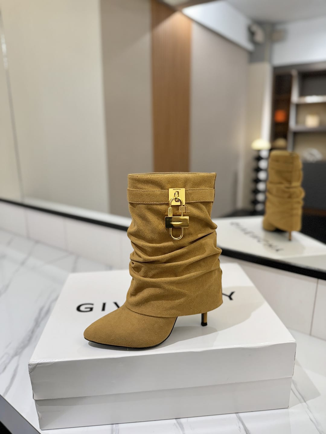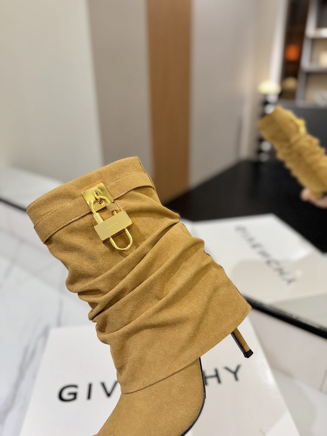 Suede band with a GIVENCHY metal clasp and 4G padlock on the right boot.