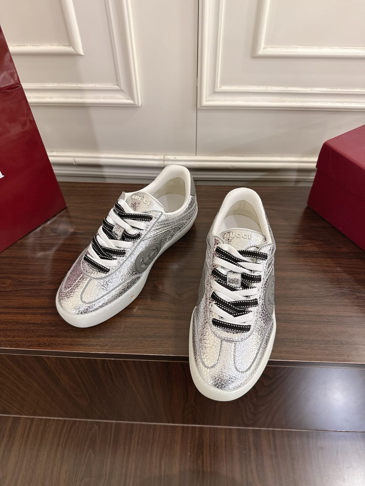 The G75 sneaker pays tribute to the year 1975 when the House patented the Interlocking G, featured in this silhouette. With its tennis-inspired look, this style is further elevated with uniquely textured leather.