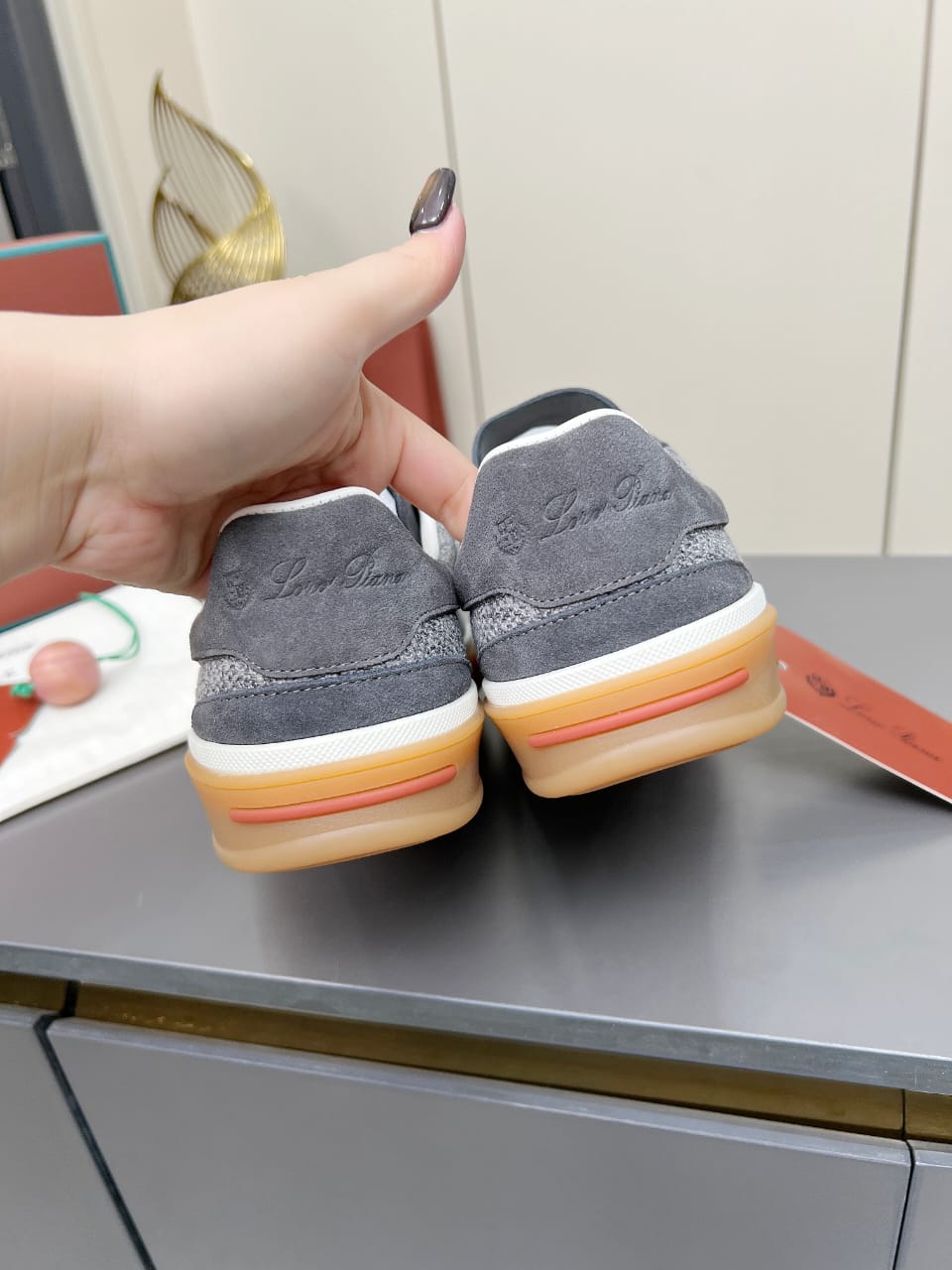 Suede trim on the toe and heel counter