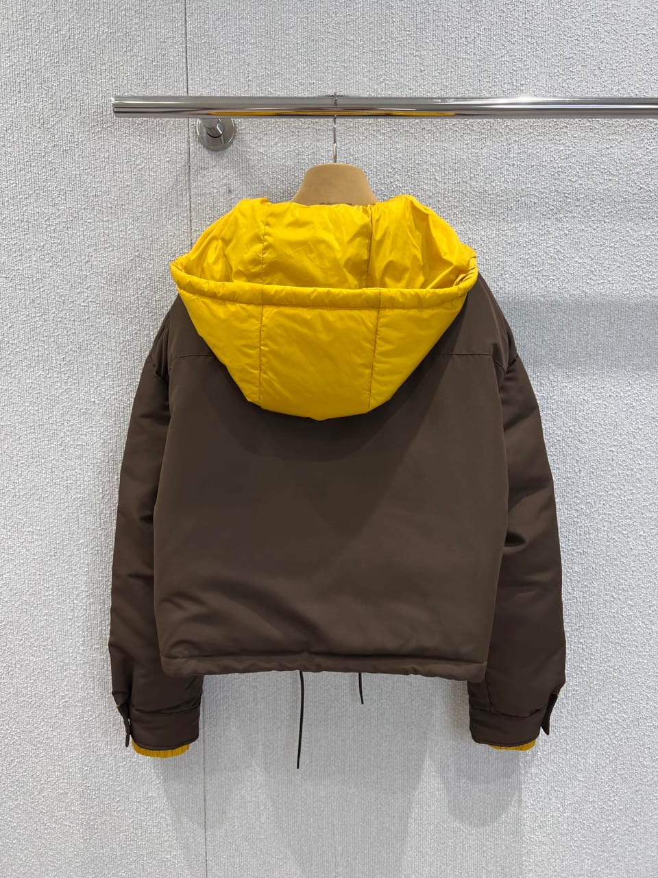 A contrast of colors and sporty elements distinguishes this technical Pongé down hoodie jacket. The slightly cropped fit, the detachable hood and the wind-proof fabric symbolize the functionality of a young, original wardrobe.