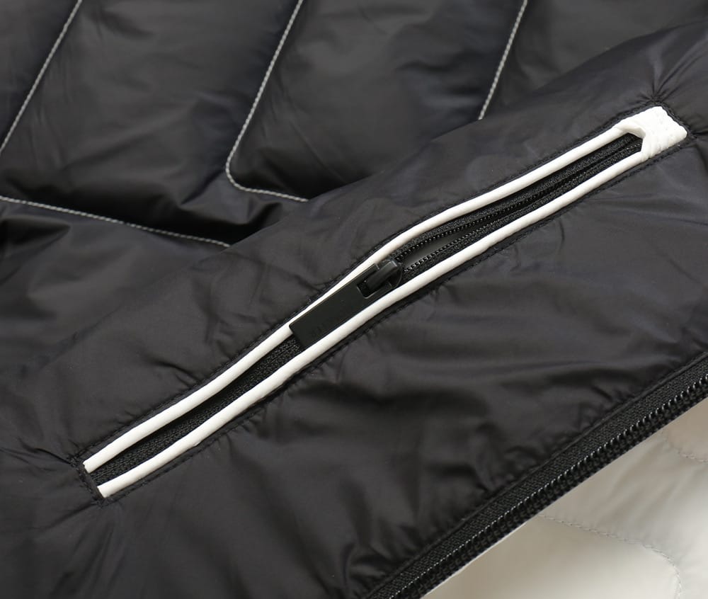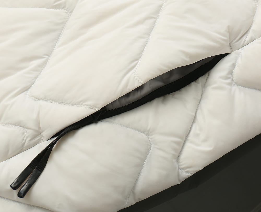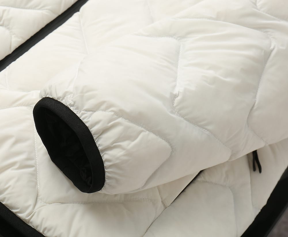 The Bimont down jacket blends cutting-edge fabrics with innovative details. The cropped design is crafted from durable, lightweight, tear-resistant nylon. It features a hood with a light-reflecting quilted pattern for an optical effect.